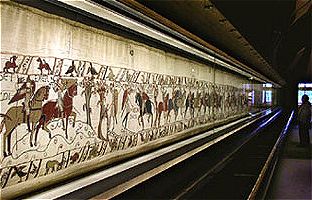 The Bayeux Tapestry -c. 70 metres (230 ft) long- depicts the history. Click pic to view. The first years of William's reign were spent crushing resistance and securing his borders, which he did with ruthless efficiency. In 1086, William ordered a survey to be made of the kingdom. This became known as the Domesday Book and remains one of the oldest valid legal documents in Britain. With the kingdom increasingly settled, William spent most of his last 15 years in Normandy, leaving the government of England to regents, usually clergymen. He spent the last months of his reign fighting Philip I, King of France. He died on 9 September 1087 from injuries received when he fell from his horse at the Siege of Mantes. He divided his lands between two of his sons, with Robert receiving Normandy and William Rufus, England. His youngest son, Henry, later became the famous King Henry I of England. Mathilde of Flanders (1031 - 1083). Queen of England and Duchess of NormandyFlanders was a principality north of France, roughly where Belgium is now. Matilda's father was Count Baldwin V and her mother was Adela, the daughter of Robert II "The Pious", King of France. Her great-great-great-great grandfather on her father's side had married Elftrude, the daughter of Alfred the Great, King of Wessex (England). She could boast of being very high born indeed.Matilda came to the attention of the rich and powerful William, Duke of Normandy. He was approximately 5'10" tall and Matilda was no taller than 5'. They probably made a striking appearance. They were married in 1053, despite a papal ban on their marriage due to consanguinity (being cousins). William and Matilda fought the papal ban on their marriage for almost a decade. When the ban was finally lifted in 1062, they both founded two abbeys (the Men's Abbey and the Ladies' Abbey) in Caen, Normandy in gratitude. William and Matilda had at least ten or eleven children. All the sons (heirs) have been recorded well in those days, but the daughters less so. When King Edward the Confessor of England died in 1066, William was ready to press his claim to the throne of England by invading and attacking King Harold, Edward's successor. Matilda gave William a ship called the MORA in which he sailed to England. William named Matilda as Regent of Normandy while he was gone, ruling in the name of her eldest son Robert. He trusted her fully to keep the duchy safe. He went on to defeat King Harold at the Battle of Hastings and was crowned King of England soon after. Matilda came to England in March of 1068 to be crowned Queen. By July of 1083, Matilda's health had begun to deteriorate. She was 52, an advanced age for the time and the strains from the family relationships, her great responsibilities and travels and many years of childbearing had finally taken a toll. She passed away after a long illness on November 2, 1083 and was buried in the Ladies' Abbey. | Gundrade de Normandie (1053-1085) ~ Gundred of Normandy (1053-1085)Gundred was a daughter of William the Conqueror by his spouse Matilda of Flanders. Some historians believe that she might have been born before the marriage. Girls were not always describes as well as boys (heirs).Gundred married (before 1070) William de Warenne (spelled "Varennes" in French), 1st Earl of Surrey. Sometime between 1078 and 1082, Gundrada (French spelling) and her husband set out for Rome visiting monasteries along the way. In Burgundy they were unable to go any further due to a war between Henry IV and Pope Gregory VII.
